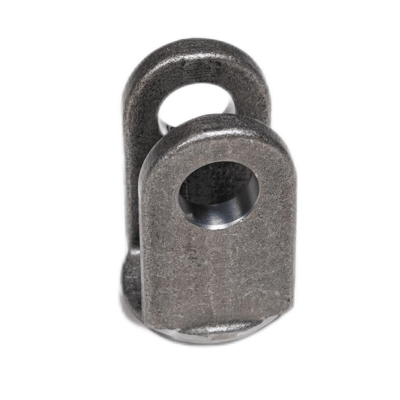 La horquilla es una montura en forma de "U" soldada al extremo del cañón o varilla. Logra la suspensión y fijación del cilindro hidráulico a través de la estructura en forma de U, permitiendo que el cilindro hidráulico oscile libremente dentro de un cierto rango de ángulo para adaptarse a diferentes requisitos de trabajo. Los soportes de horquilla se utilizan generalmente en maquinaria móvil y permiten un movimiento de rotación limitado.